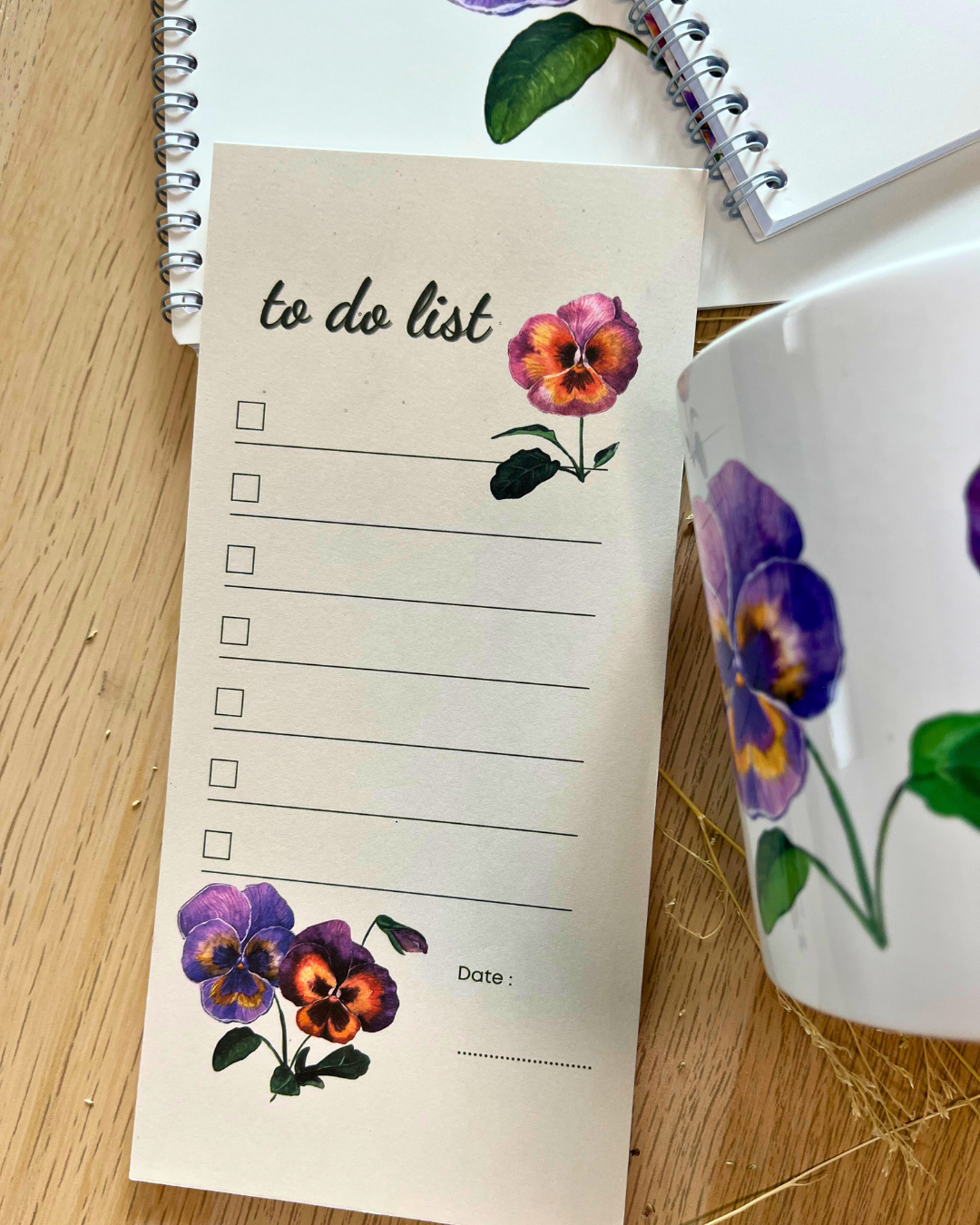 To-do list – 10 × 21 cm, glued at the top, with 25 printed sheets.